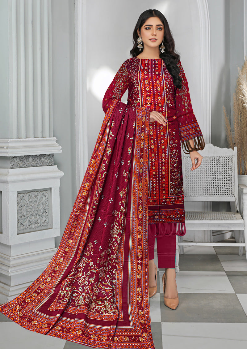 Premium Unstitched 3PC Embroidered Lawn Suit with Bamber Chiffon Dupatta
