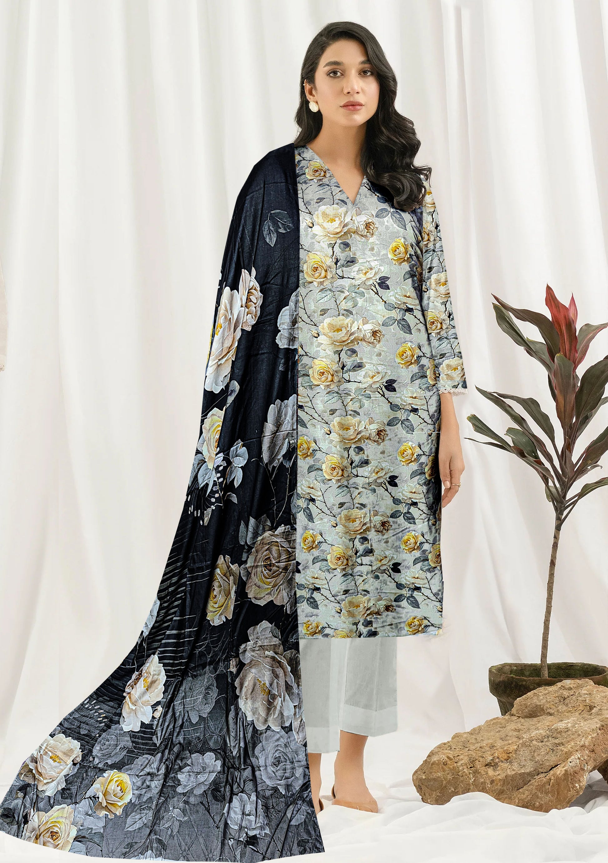 3-Pc Printed Linen Floral Unstitched Suit with linen Dupata (Premium Winter Collection)