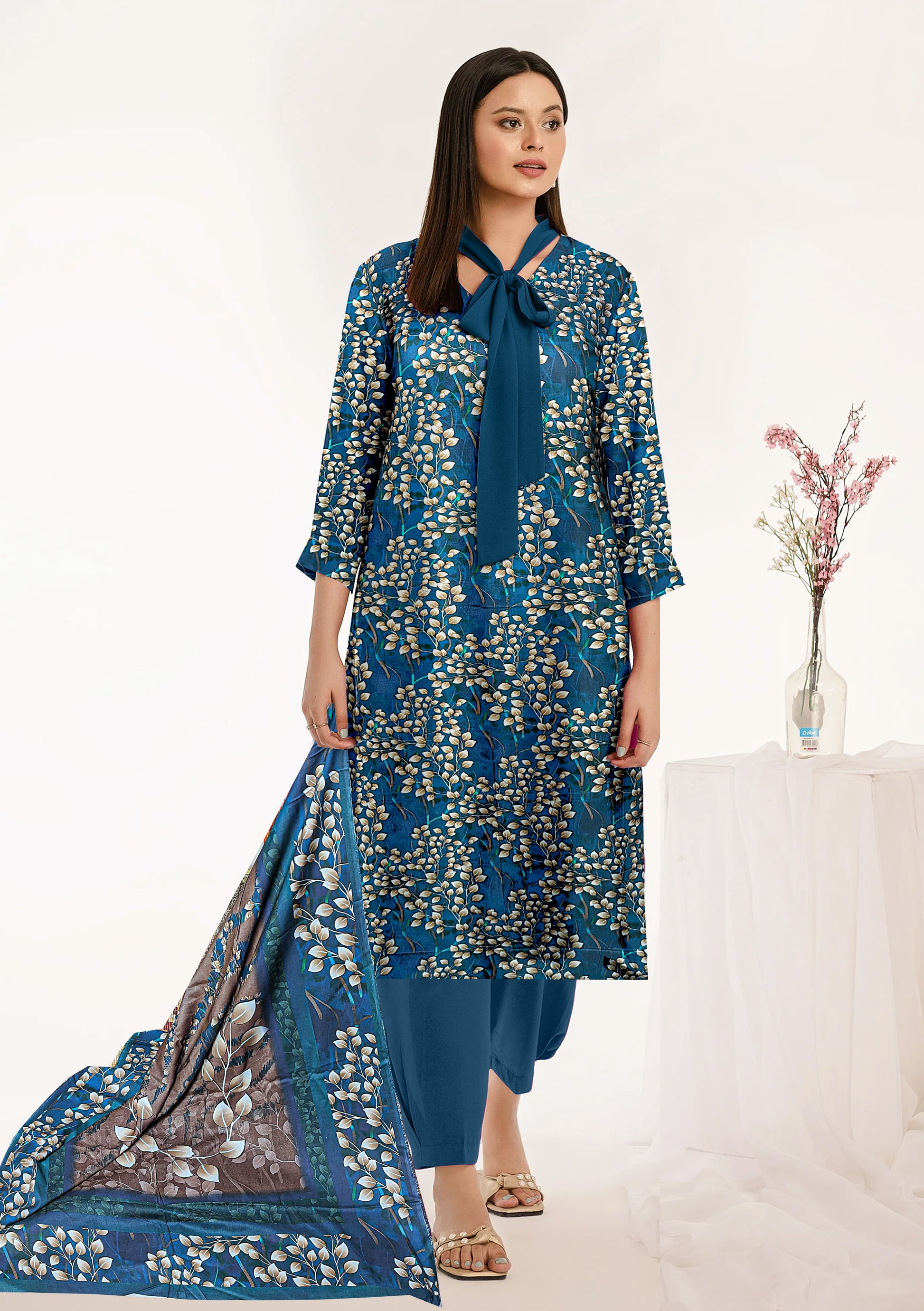 ✔ 3 Piece Unstitched Suit – Shirt, Trouser & Dupatta
