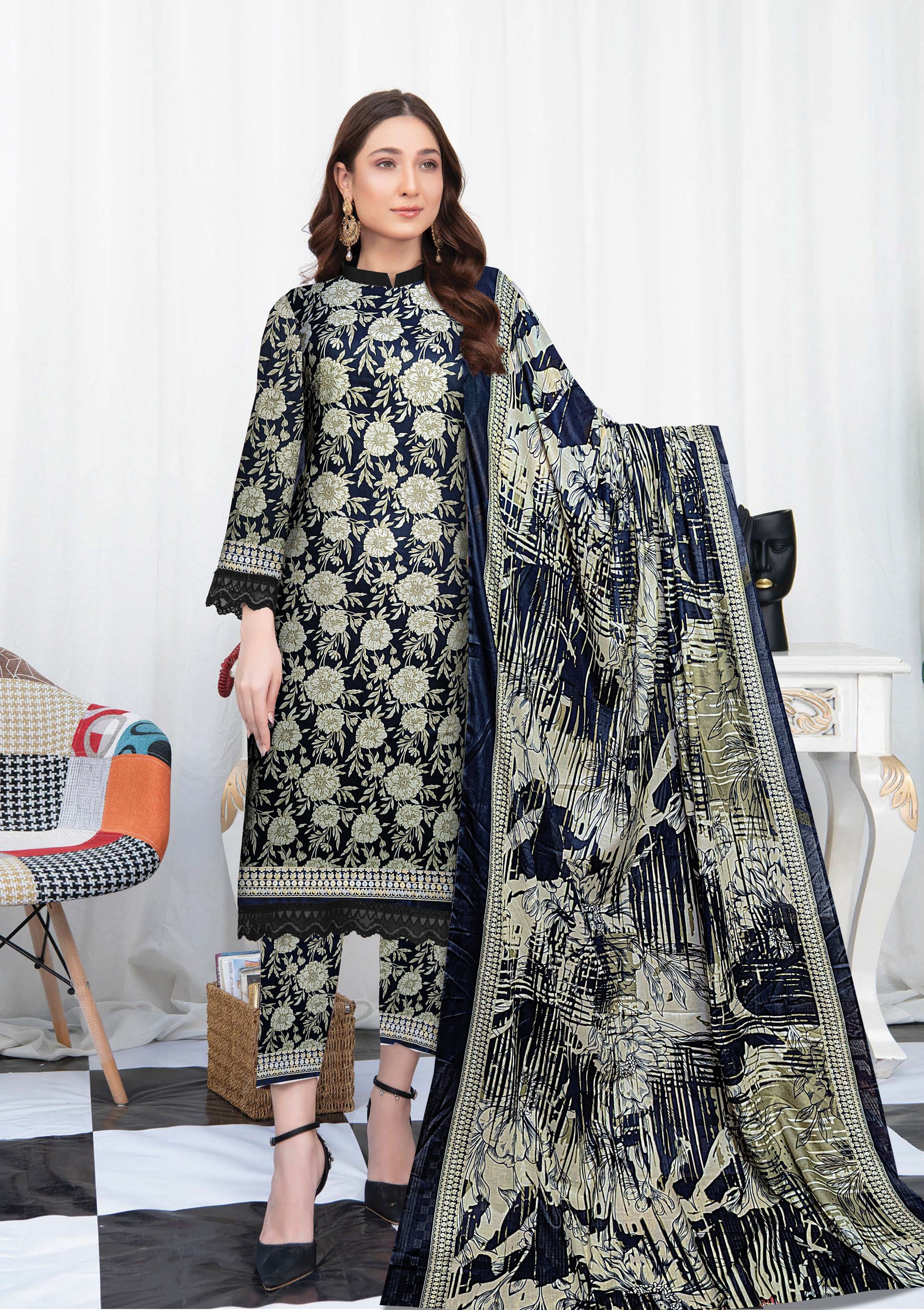Summer End Sale 3-piece Premium lawn suit with Lawn Dupatta(Unstitched)