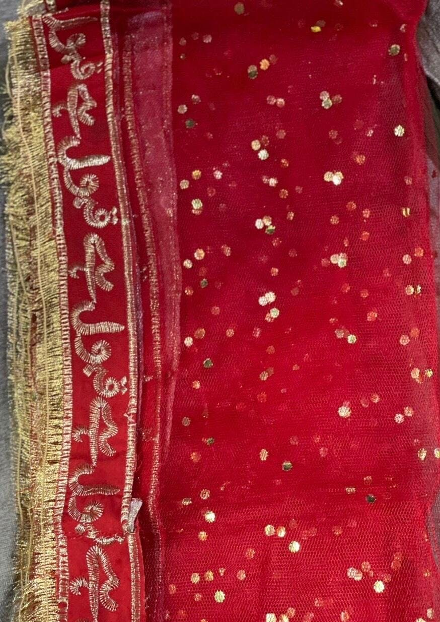 Rich red bridal dupatta with intricate golden embroidery